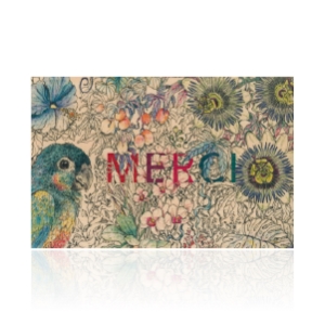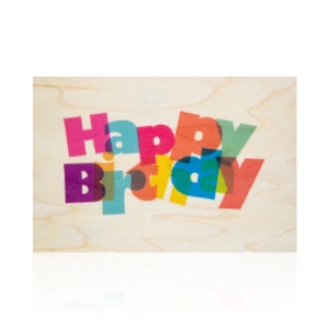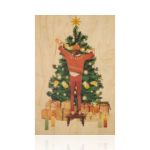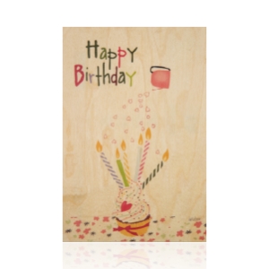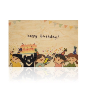 메이플 우드로 만든 특별한 일러스트가 있는 엽서.