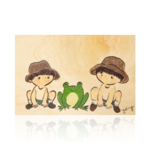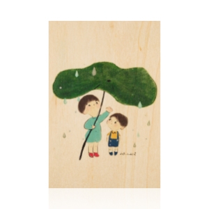 메이플 우드로 만든 특별한 일러스트가 있는 엽서.