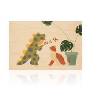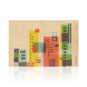 메이플 우드로 만든 특별한 일러스트가 있는 엽서.