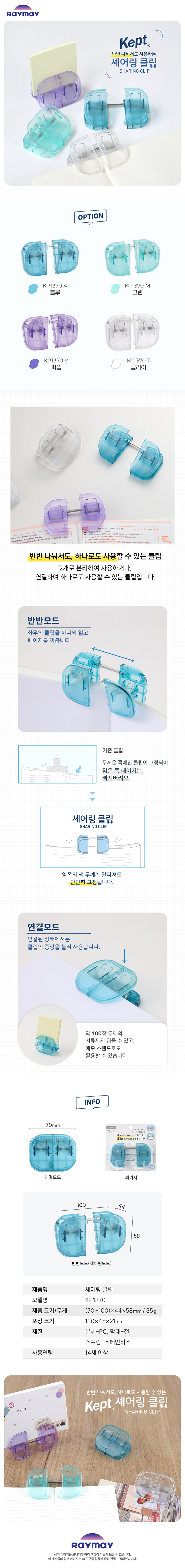 | 켑트(KEPT) 셰어링 클립 | 블루 | KP1370 A | 4902562518343 | ₩ 9,900 | 1 / 80 | 중국 |