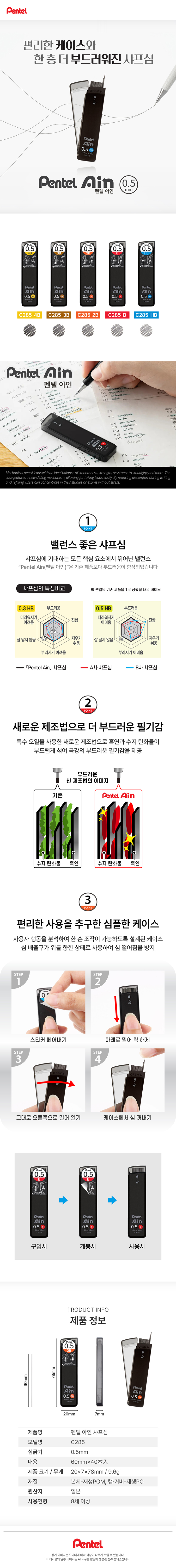 | 품명 | 심굵기 | 경도 | 모델명 | 바코드 | 포장단위 | 소비자가격 | 원산지 |