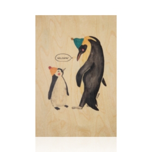 carte en bois greetings 2 LM manchots