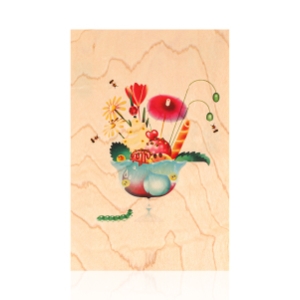 메이플 우드로 만든 특별한 일러스트가 있는 엽서.