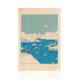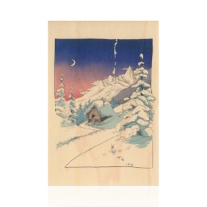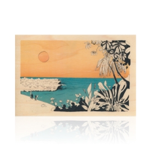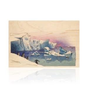 메이플 우드로 만든 특별한 일러스트가 있는 엽서.