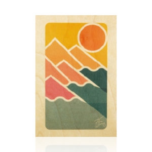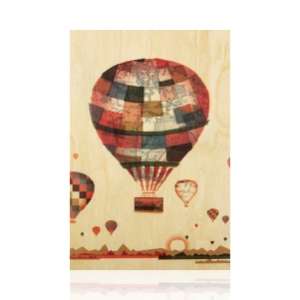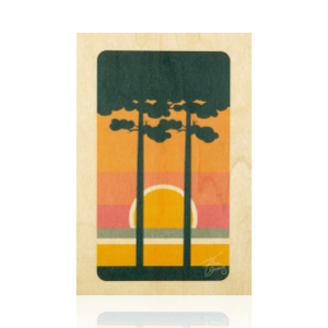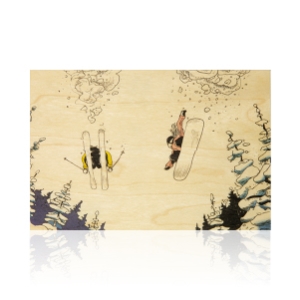 메이플 우드로 만든 특별한 일러스트가 있는 엽서.