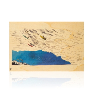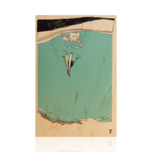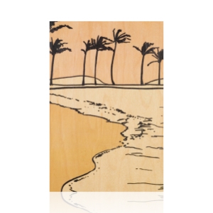 메이플 우드로 만든 특별한 일러스트가 있는 엽서.